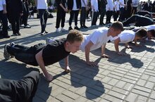 Совместно с другими участниками мероприятия ребята выполнили коллективные отжимания: 29 220 отжиманий – по одному отжиманию за каждый прожитый день с момента окончания Великой Отечественной войны. -