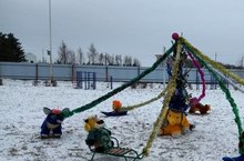 Во дворе нашего детского сада поставили "Креативную ёлку и новогоднюю карусель" подготовка к новому году уже началась.