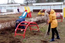 В нашем детском саду каждую субботу проходят субботники. В субботнике активное участие принимают сотрудники.