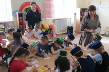 Сегодня учителя родного языка и литературы Альфина Вазировна и Гульсина Гумеровна 4 ой школы,согласно плану преемственности между детским садом и школой, провели увлекательное занятие на тему"Знакомство с национальными костюмами татарского народа" в старшей группе.