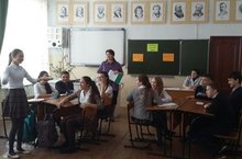 Среди учеников восьмых классов прошел КВН «Любители русского языка». Команды соревновались в знании правил русского языка, фразеологизмов, поговорок и пословиц о языке. Зрители угадывали литературных героев, решали кроссворды.