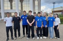Активисты детских движений, учащиеся 10-ых классах в сквере «Театральный» во время торжественного