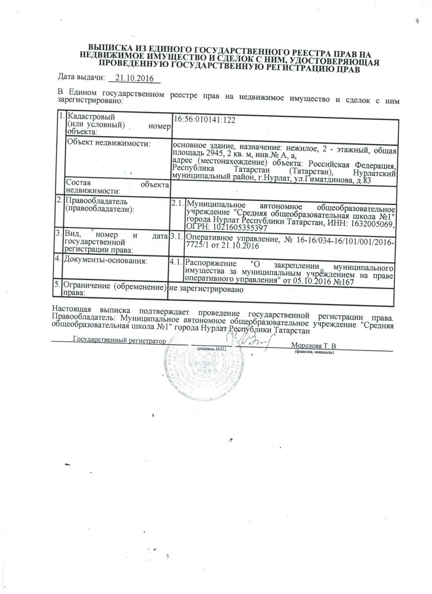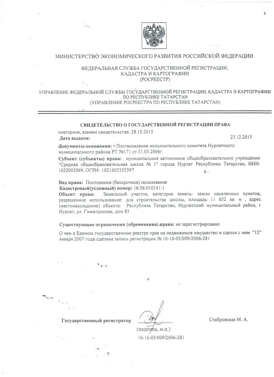 Полное официальное наименование: Муниципальное автономное общеобразовательное учреждение «Средняя общеобразовательная школа №1» города Нурлат Республики Татарстан / Тулы официаль исеме: Татарстан Республикасы Нурлат шәһәре «1 нче урта гомуми белем мәктәбе» муниципаль автоном гомуми белем учреждениесе