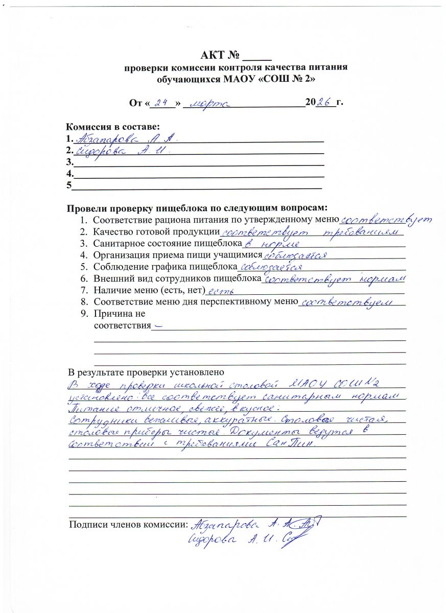 Акт проверки комиссии контроля качества питания от 24.03.2026
