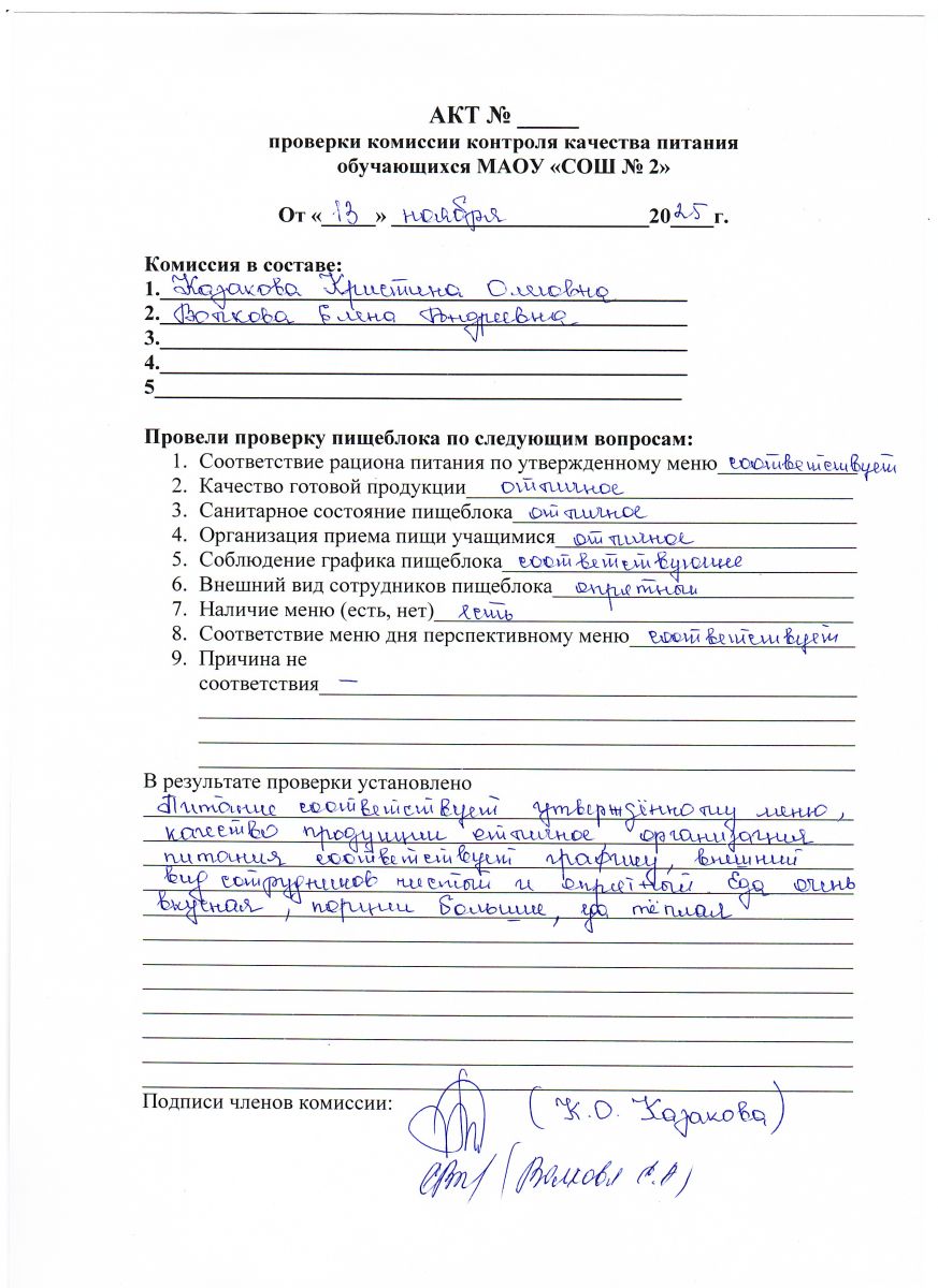 Акт проверки комисси контроля качества питания от 13.11.2025