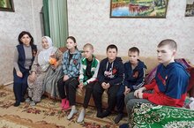 Поздравление учащимися с Днем Победы бывшей сотрудницы школы 03.05.2023
