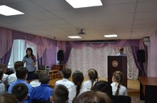 Профилактическая беседа с учащимися 6-9-х классов с участием начальника штаба, подполковником внутренней службы Муртазиной Р.Р. и общественным помощником Уполномоченного по правам ребенка в РТ в Нурлатском районе Кныревой А.В. 15.05.2019