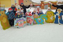 В этом году к детям пришли Смешарики. Вместе героями дети обходили территорию, осматривали ее на достаточное количество снега, посчитали сосулек на крыше,рисовали на снегу.