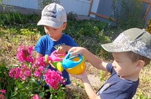 Во время прогулок воспитанники совместно с воспитателями ухаживают за растениями на клумбах. Труд в природе доставляет детям много радости и имеет большое образовательное значение. Ребята закрепляют знания о названиях растений, их строении, пользе, учатся правильно ухаживать за растениями. Также формируются положительные моральные качества, воспитывается любовь и бережное отношение к природе.