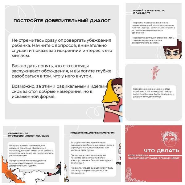 В условиях, когда радикальные идеи могут легко проникать в умы подростков, доверительный диалог становится ключевым элементом, позволяющим обсуждать сложные темы, выявлять тревожные изменения в поведении и противостоять возможному влиянию экстремистских взглядов