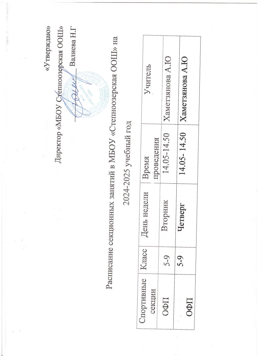 Расписание секционных занятий в МБОУ "Степноозёрская ООШ" на 2024-2025 учебный год