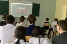 В рамках проведения Всероссийского учения, профилактической и воспитательной работы, обучающиеся и педагоги школы просмотрели видеоролики "Диверсия", "Вербовка и её последствия" и документальный фильм "Недетский террор".