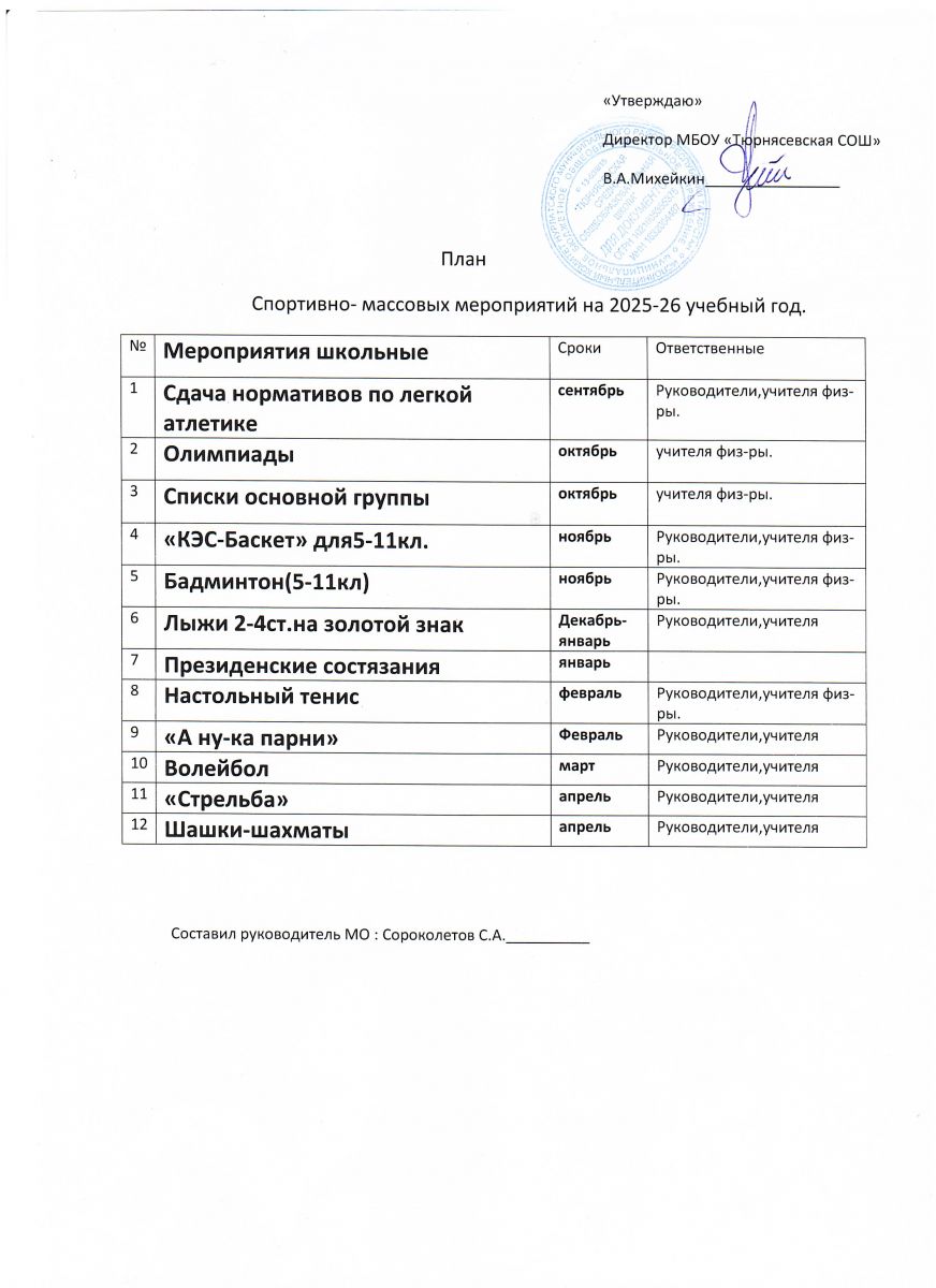 План спортивно-массовых мероприятий на 2025-26 учебный год