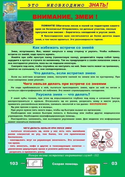 Памятка по правилам поведения в лесу (укусы змей, клещей и насекомых
