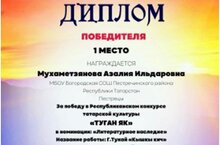 Поздравляем Мухаметзянову Азалию! - 1 место в республиканском конкурсе татарской культуры "Туган як" и Семенееву Аделину - 2 место! 26.02.2025