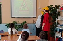 Вожатые 8а класса провели в начальных классах интерактивную викторину «Раньше счета и письма, рисованья, чтенья, всем ребятам нужно знать правила движения!» 18.04.2024