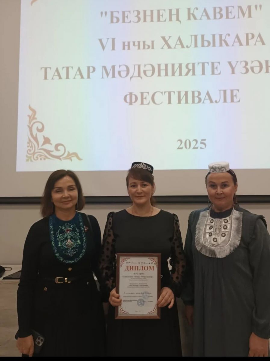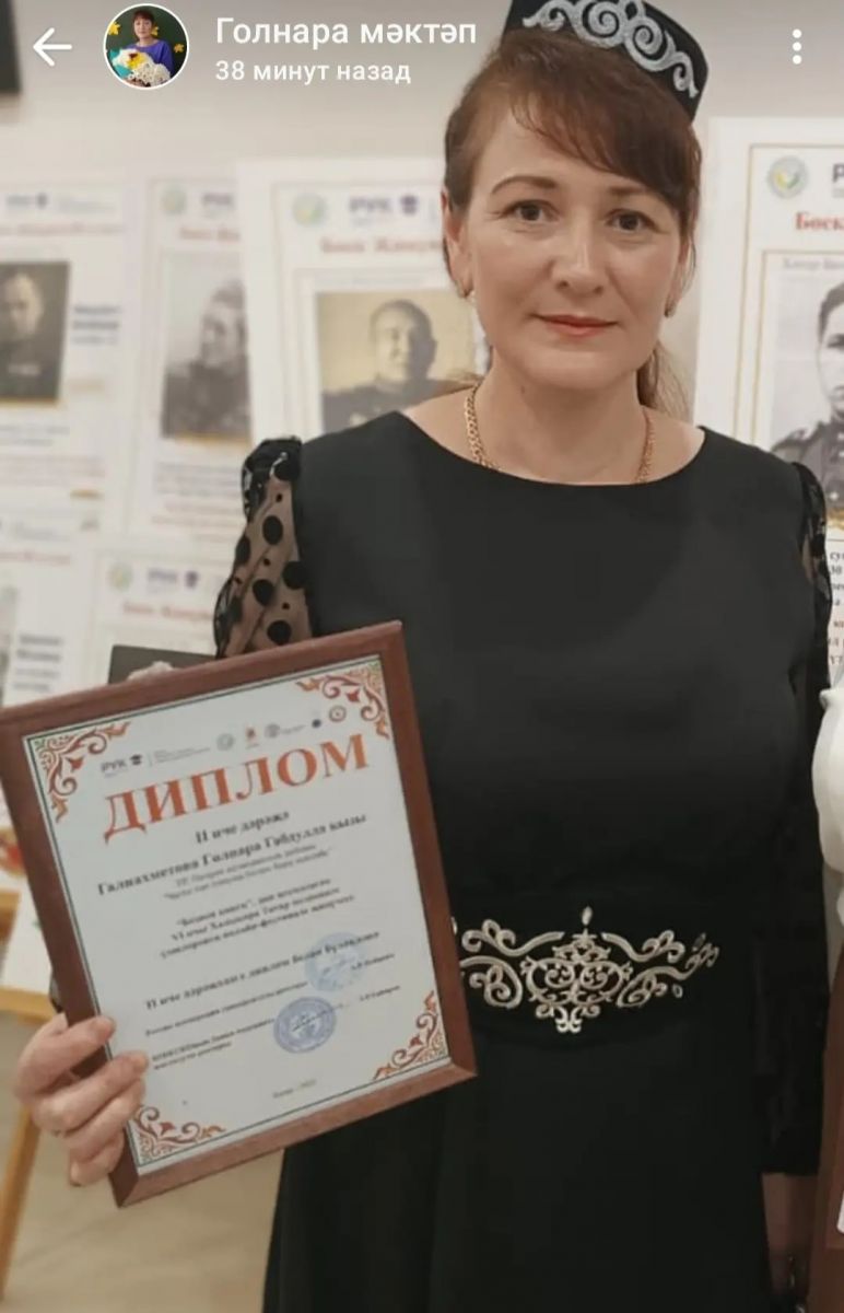 "Минем яраткан ягым" исемендәге мәктәп музееның буыннарның тарихын һәм хәтерен саклаудагы эшчәнлеге" дигән хезмәте белән мәктәбебезнең тарих укытучысы Галиахметова Голнара Габдулла кызы“Безнең кавем” дип исемләнгән VI нчы Халыкара Татар мәдәнияте үзәкләренең онлайн-фестивалендә катнашып II дәрәҗәдәге диплом белән бүләкләнде. Чара Казан шәһәре кооператив институтында үтте.