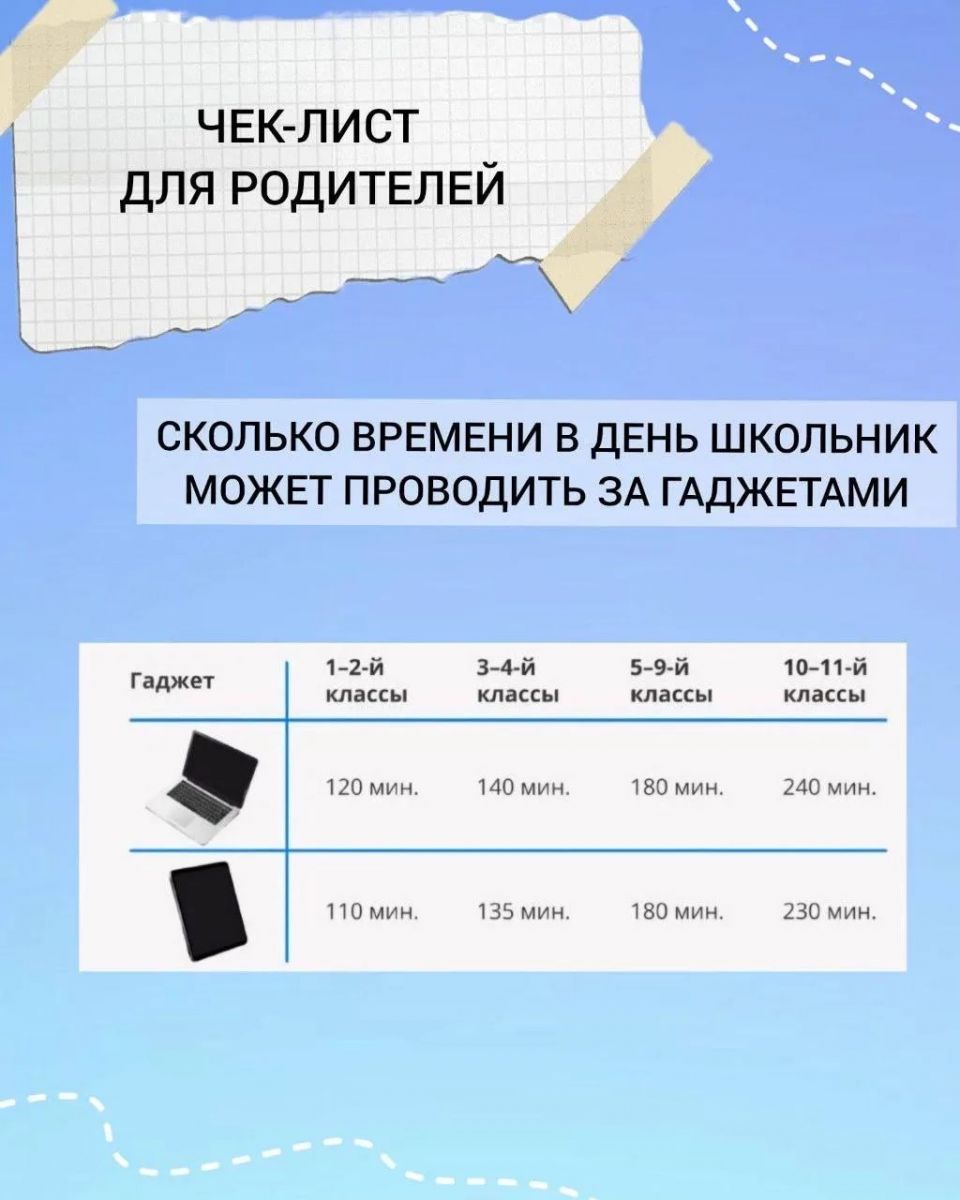 Не откладывайте визит к врачу, если: ● ребёнок говорит, что вдали всё расплывается; ● появились краснота и ощущение песка в глазах; ● часто болят голова, шея или плечи. А вы следите за тем, сколько ваш ребёнок сидит в гаджетах?