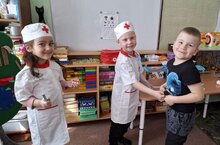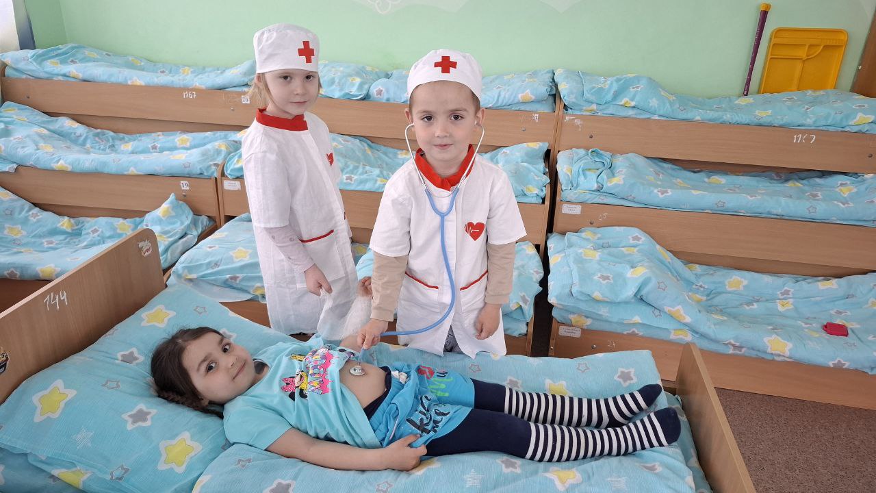 Дети с удовольствием играли в дидактические игры: «Окажи первую помощь»; «Собери сумку для скорой», «Профессии», «Угадай кто я?», «Что нужно врачу для работы?». Детям очень понравилось играть в сюжетно-ролевую игру «Скорая помощь». Они сами распределяли роли, кто-то был диспетчером, водителем, врачом, фельдшером. С удовольствием пробовали себя в роли медицинского работника: мерили друг другу давление, слушали биение сердца, учились перебинтовывать руку, правильно накладывать пластырь и т.д.