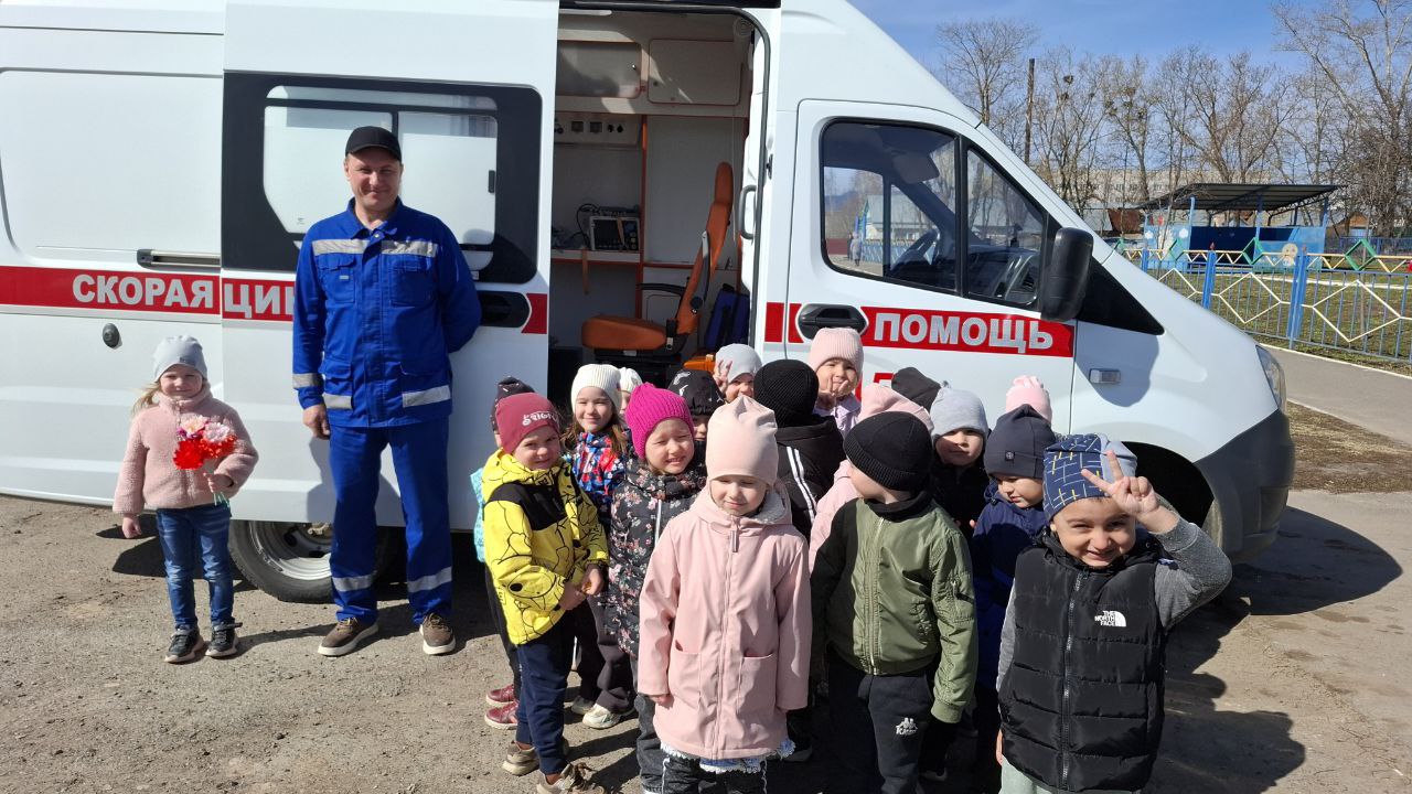 В средней группе "Сказка" МБДОУ Пестречинского детского сада №1 "Колокольчик" прошли мероприятия, посвященные Дню работника скорой медицинской помощи, который отмечается 28 апреля! С ребятами провели беседы о людях, спасающих жизни, о том какими качествами они должны обладать. Дети с удовольствием слушали рассказы воспитателя о том, как и когда появилась скорая помощь. В ходе беседы ребята расширили знания о профессиях сотрудников скорой помощи, что у многих наших детей мамы, папы и дедушки - это работники скорой помощи и изо дня в день оказывают экстренную скорую помощь. Закрепили знания о том, как и при каких случаях и кому вызывают скорую помощь. Дети вспомнили, что у скорой медицинской помощи есть свой символ - это красный крест, а специальный автомобиль похож на маленький автобус и как правило белого или желтого цвета с красной полосой, красным крестом и цифрами «03» на боку. А потом к детям приехал настоящий автомобиль «скорая помощь». Ребятам рассказали о том, как принимаются вызовы, какие действия нужно выполнить, и какое время для этого требуется. Ребята осмотрели автомобиль «скорой помощи», готовый к выезду в любую минуту.