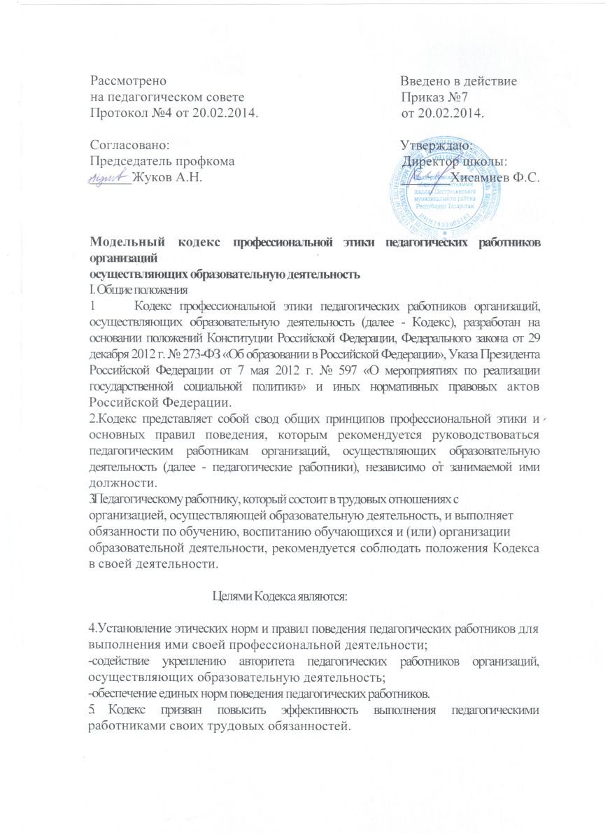 Модельный кодекс профессиональной этики педагогических работников стр.1