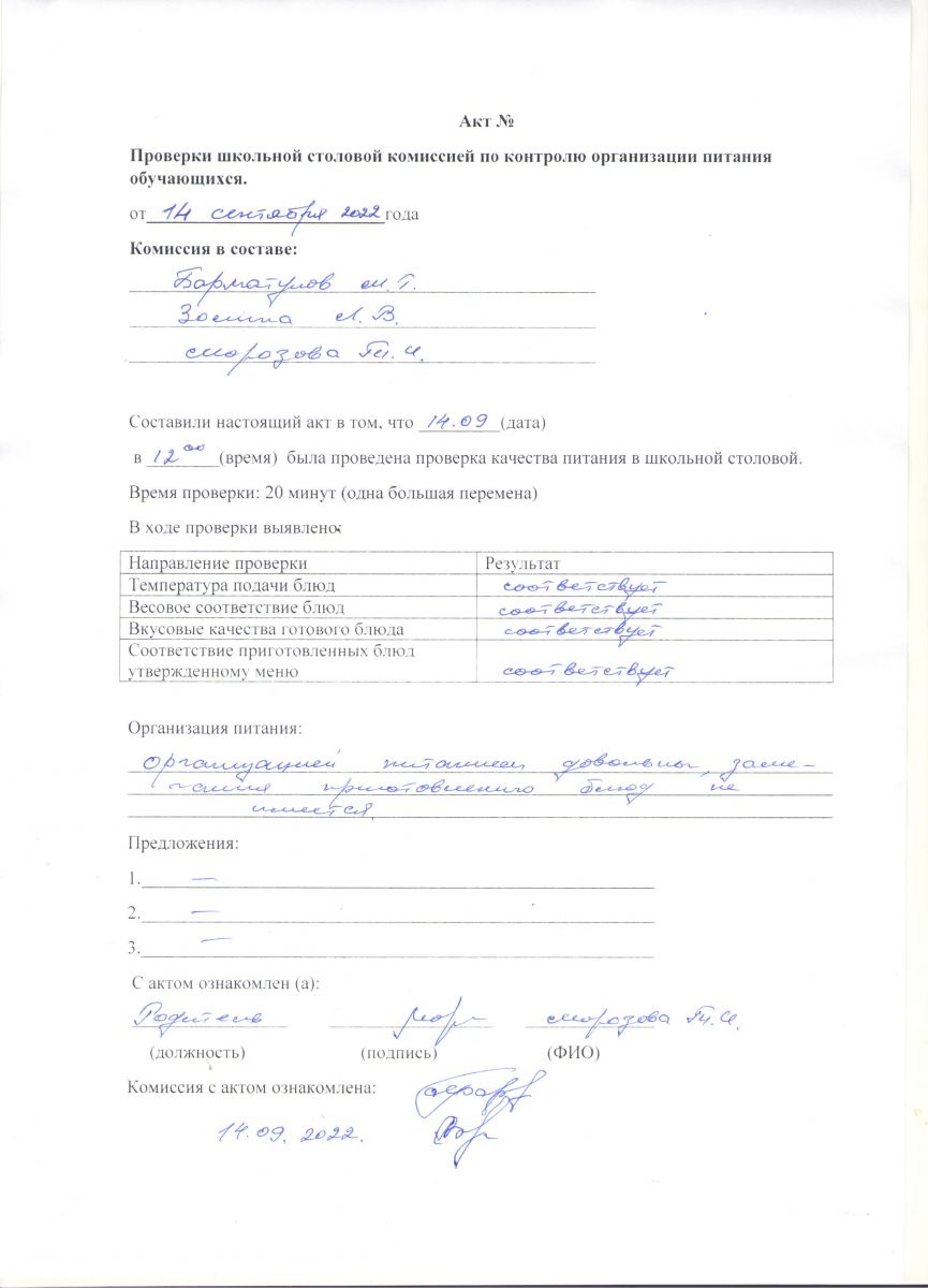 В школе действует журнал родительского контроля. Родители учащихся по согласованию с администрацией учреждения могут посетить столовую, продегустировать блюда из школьного меню и оставить отзыв.