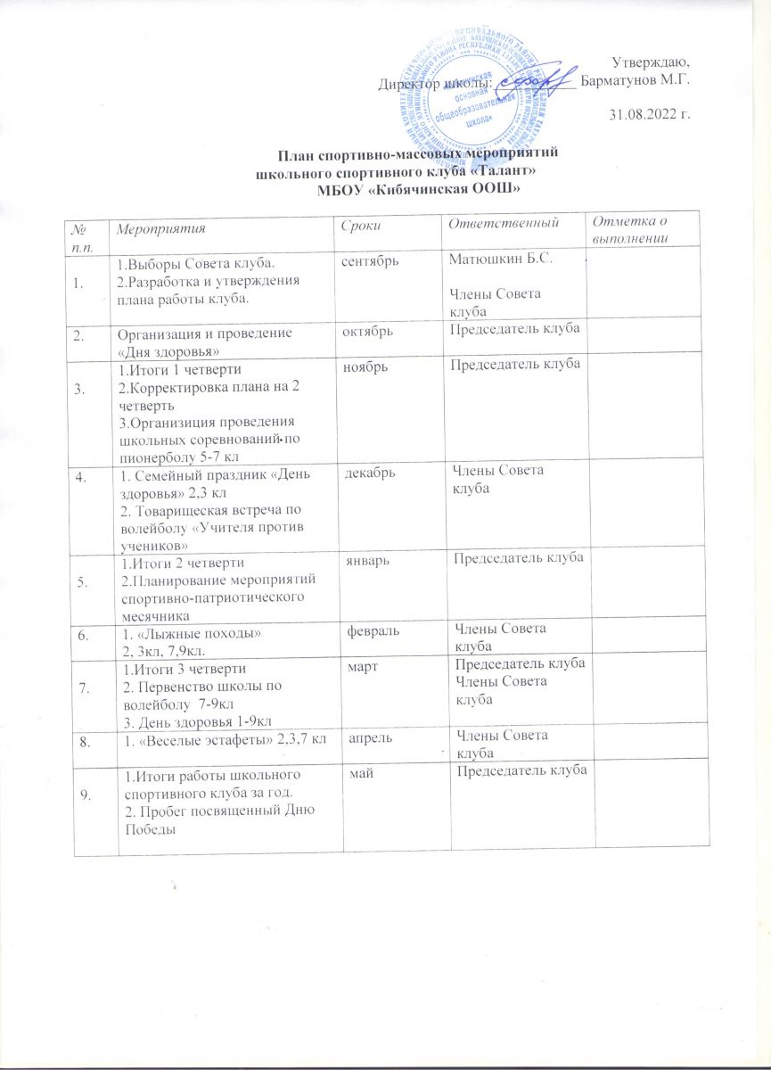 План спортивно-массовых мероприятий на 2022-2023 учебный год