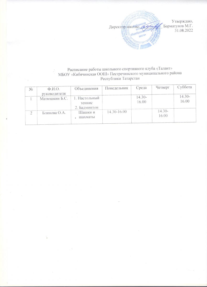 Расписание ШСК на 2022-2023 учебный год