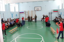 "Курсы молодого бойца" 21.02.2019 Накануне 23 февраля в школе прошло общешкольное мероприятия "Курсы молодого бойца" в честь празднования Дня Защитника Отечества.В этот день в спортивном зале школы прошли соревнования между сборными командами 6-9 классов. Ребята соревновались на ловкость, силу. Были и шуточные конкурсы, в которых ребята с удовольствием принимали участия. Между соревнованиями были музыкальные паузы.