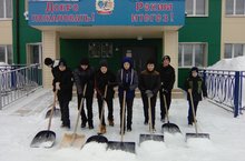 Все учащиеся школы-интерната дружно вышли на уборку территории от снега.