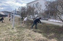Сотрудники детского сада дружно убирали территорию от мусора и сухих листьев, занимались благоустройством клумб и газонов.