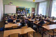 ЮИД отряд поздравили первоклассников с началом учебного года и подарили им световозвращающие значки и тетради для юных пешеходов 04.09.2023