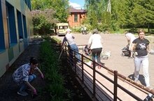 Родители активно продолжают благоустройство пришкольного участка