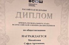 Ученица 10 класса, стала призером регионального этапа всероссийской олимпиады школьников по обществознанию 07.02.2024