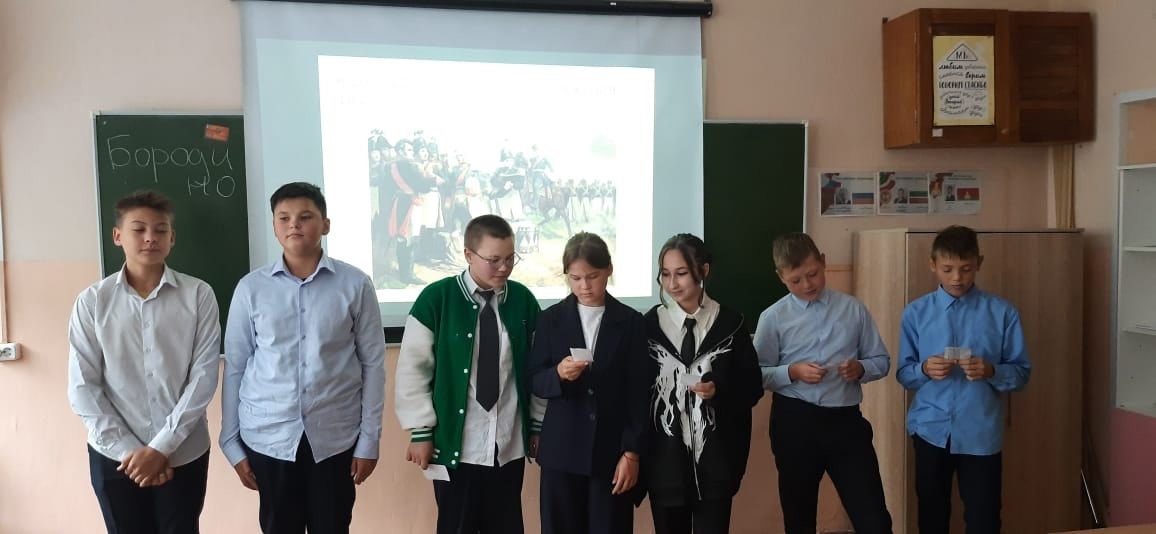 8 сентября педагогом- библиотекарем МБОУ "Кощаковской СОШ" был проведен ряд мероприятий, посвященных Дню воинской славы. 210 лет Бородинскому сражению (1812) с учащимися 7 класса