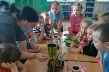 В детском саду продолжается работа по реализации кратковременного проекта «Огород на подоконнике». Проект является очень приятным занятием, особенно зимой и весной, когда хочется не только отведать свежие дары природы, но и посмотреть на цвета зелени укропа, петрушки, помидоров и лука. И нет ничего приятнее, когда первая весенняя зелень поспевает прямо у тебя на подоконнике в групповой комнате. В процессе систематического ухода за растениями формируются определенные трудовые навыки у детей, дошкольников приучают внимательно относиться к живой природе и заботиться о растениях./ Балалар бакчасында кыска вакытлы «тәрәзә төбендә бакча»проектын тормышка ашыру буенча эш дәвам итә. Проект бик күңелле шөгыль, бигрәк тә кыш һәм яз айларында, табигать бүләкләреннән авыз итеп кенә калмыйча, яшеллеккә, петрушка, помидор һәм суган төсләрен дә карыйсы килә. Беренче язгы яшел тәмләткечләр төркем бүлмәсендәге тәрәзә төбендә үк өлгерә башлагач, күңеллерәк нәрсә юк. Үсемлекләрне системалы карау барышында балаларда билгеле бер хезмәт күнекмәләре формалаша, мәктәпкәчә яшьтәге балаларда тере табигатькә игътибар белән карарга һәм үсемлекләр турында кайгыртырга өйрәтәләр.