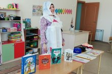 В рамках профориентации в детском саду прошла встреча с сельским библиотекарем Натальей Хоменко. С воспитанниками средней группы было проведено познавательно-развлекательное мероприятие «Все профессии нужны, все профессии важны!». Цель мероприятия – познакомить ребят с видами профессий, воспитать уважительное и доброе отношение к людям разных профессий./Һөнәри юнәлеш бирү кысаларында балалар бакчасында авыл китапханәчесе Наталья Хоменко белән очрашу узды. Урта төркем тәрбияләнүчеләре белән «барлык һөнәрләр дә кирәк, барлык һөнәрләр дә мөһим! " дигән танып-белү-күңел ачу чарасы үткәрелде.. Чараның максаты-балаларны һөнәр төрләре белән таныштыру, төрле һөнәр ияләренә карата ихтирамлы һәм мәрхәмәтле караш тәрбияләү