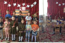 После мероприятия в детском саду воспитанники подготовительной группы приняли участие на митинге возле памятника нашего села.Дети в память о погибших возложили к обелиску цветы,почтили минутой молчания.