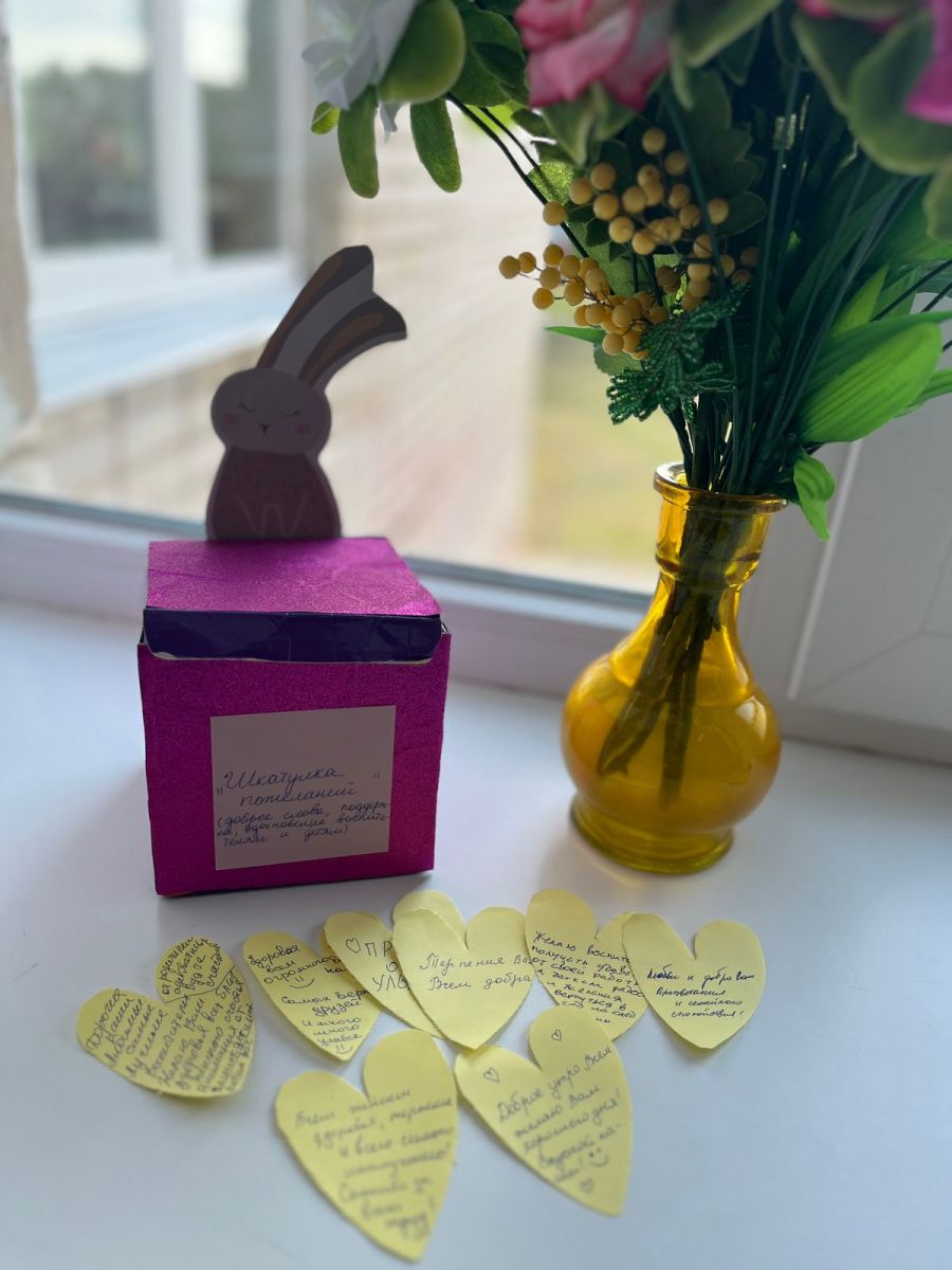Шкатулка пожеланий – это простой, но очень эффективный способ создать в детском саду атмосферу взаимопонимания, доверия и доброты. Она напоминает всем о важности добрых слов и делает нашу группу еще более счастливой и дружной!