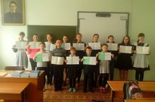 Выступление учащихся 7 класса на школьной линейке о добрых делах 26.04.2016