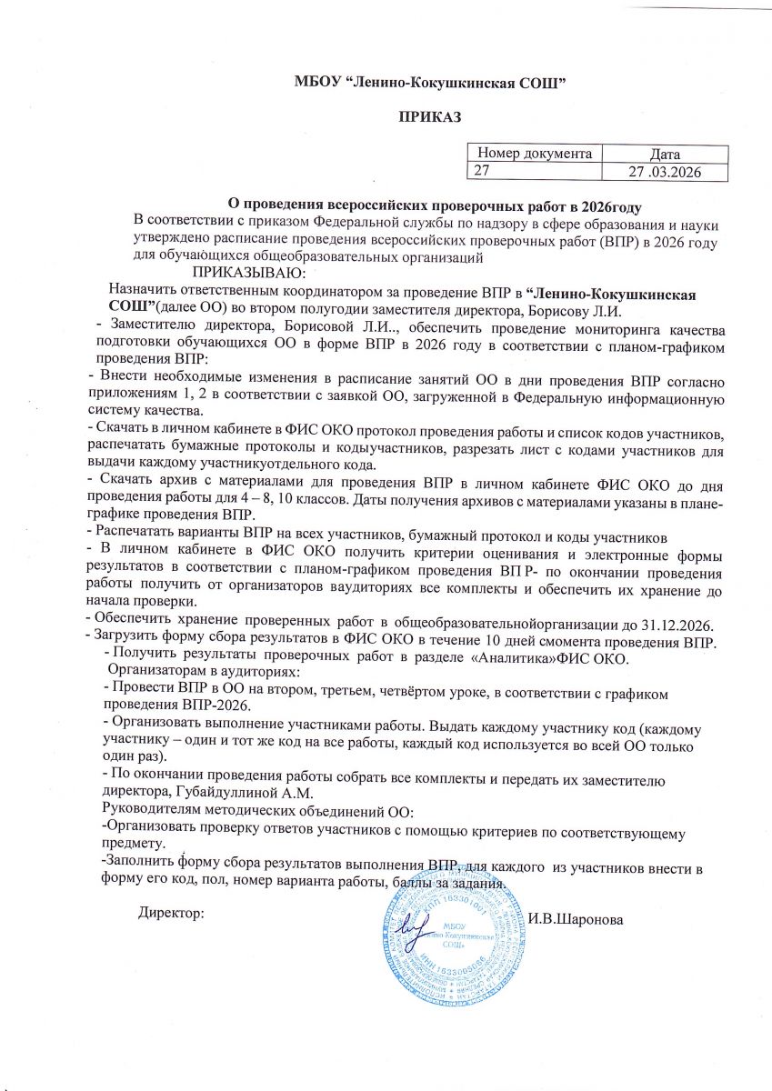 Короткое название: МБОУ "Ленино-Кокушкинская СОШ"