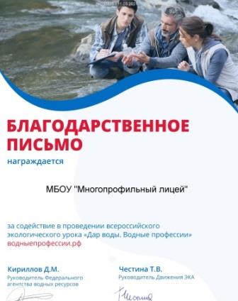 Всероссийский экологический урок"Дар воды.Водные профессии"