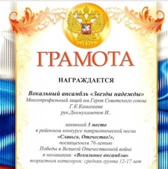 Районный конкурс патриотической песни "Славься Отечество!", посвященный 76-летию Победы в Великой Отечественной войне