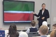 29 ноября 1991 года Верховный Совет Республики Татарстан в качестве одного из государственных символов республики принял современный флаг Татарстана. Галиева А.Р., классный руководитель, 3к класса провела внеклассное мероприятие "Мой Татарстан". Ребята познакомились с историей флага РТ.