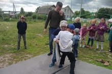Мәктәп лагерендә ял итүче балалар һәм Тургай балалар бакчасы балалары белән бергә авыл клубы эшчеләре Сабан туй үткүрде...