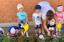 Бездә табигать атнасы. Кечкенәләр төркеме бакчабыздагы чәчәклзрне тәрбияләргә өйрәнәләр.