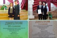 Призёры XVII республиканской научно-практической конференции школьников им. Л.Н. Толстого- Тарасова Алексея (ученик ПСОШ1, Учитель - Егошина Е.П.)- диплом 1 степени, Сафину Камиллу( ученица Богородской СОШ -учитель Шарипова Т.А.) - диплом 3 степени 20.04.2019