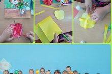 Аппликация "Яблоко" в нетрадиционной технике - объёмная аппликация. Цель: формирование навыков и умений для создания объёмной аппликации; умение работать по шаблону, резания бумаги ножницами, склеивание бумаги; закрепление знаний по технике безопасности при работе с ножницами, клеем.