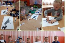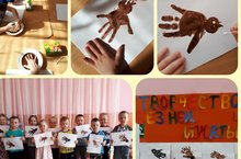 Рисование "Птички-невелички" Дети упражнялись в технике рисования нетрадиционным способом ладошкой, учились передавать образ птицы в рисунке.