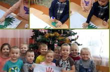 Нетрадиционное занятие по ИЗО "Новогодняя елочка" коллективная аппликация из ладошек. Цель: познакомить с нетрадиционными способами аппликации из ладошек. Задачи: научить передавать образ елки в сотворчестве с педагогом, уметь размещать их на бумаге; развивать чувство формы и композиции; воспитать аккуратность в работе.